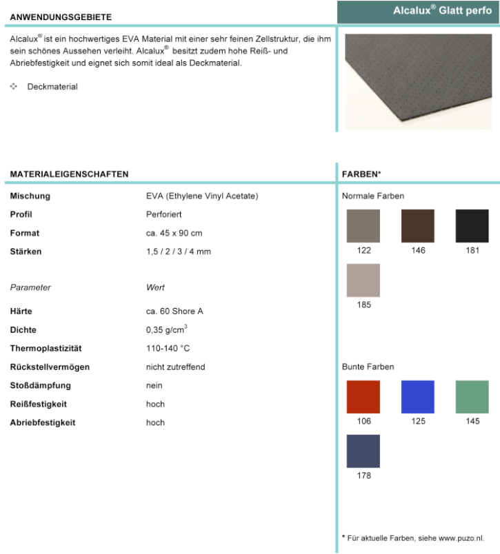 Alcalux Glatt - Alcalux Glatt perfo - Marilon - Marilon perfo - Softlux - Softlux perfo - Softlux marmer - Softlux wave